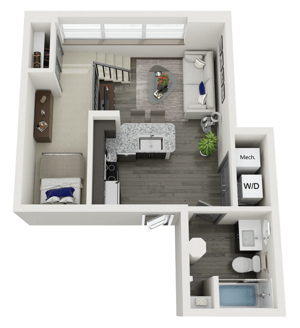 Beautifully constructed studio loft with an open concept living space! The kitchen is stunning with granite countertops, modern cabinetry, stainless steel appliances and washer and dryer are INCLUDED. This floor plan has a luxurious atmosphere! Pet Friendly **Restrictions Apply**