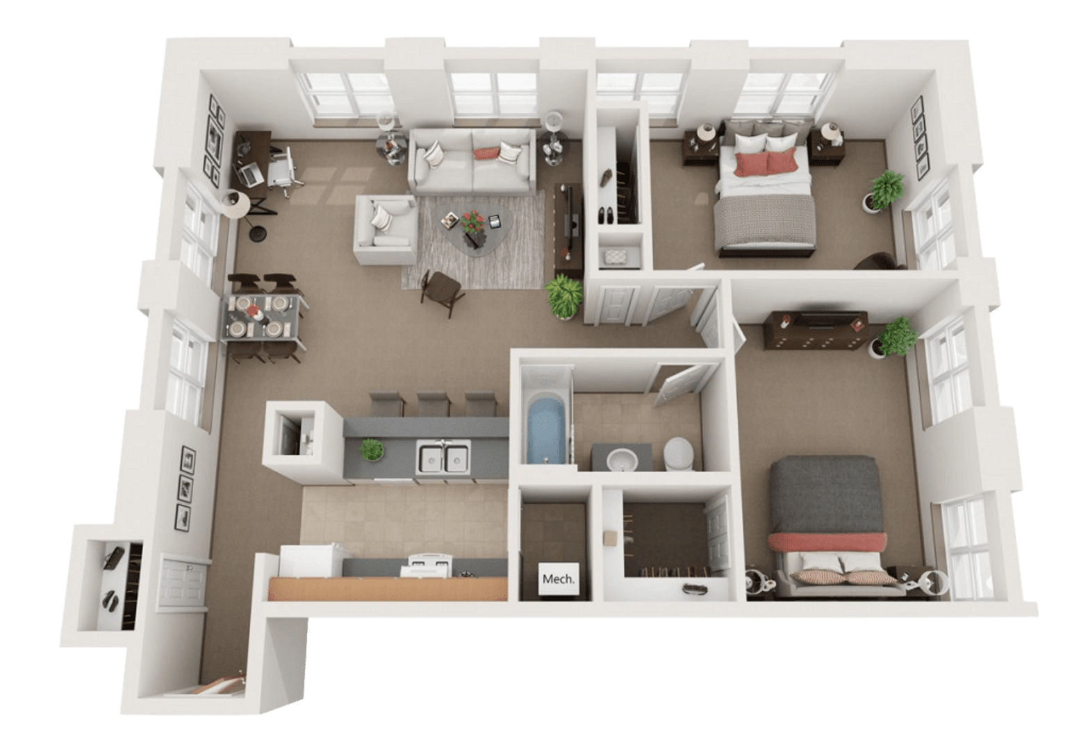This spacious, standard two bedroom apartment has ample square footage with an open concept living space! The large windows provide an abundance of natural sunlight. This apartment includes a gas stove, refrigerator, & dishwasher. Pet Friendly (Restr