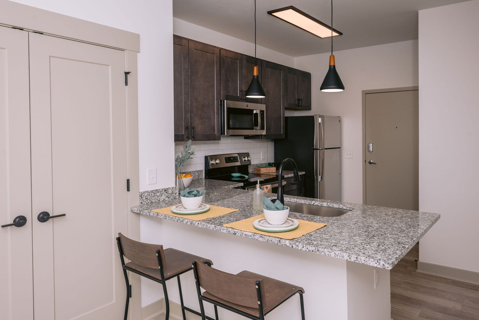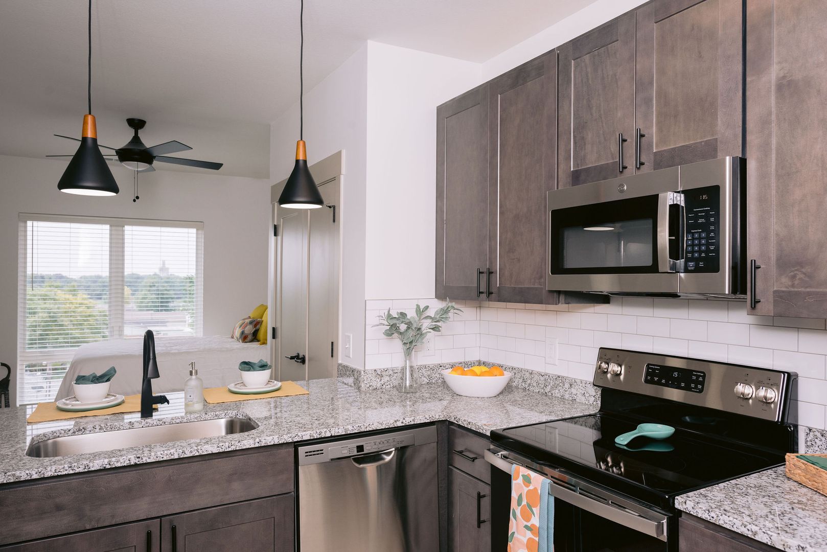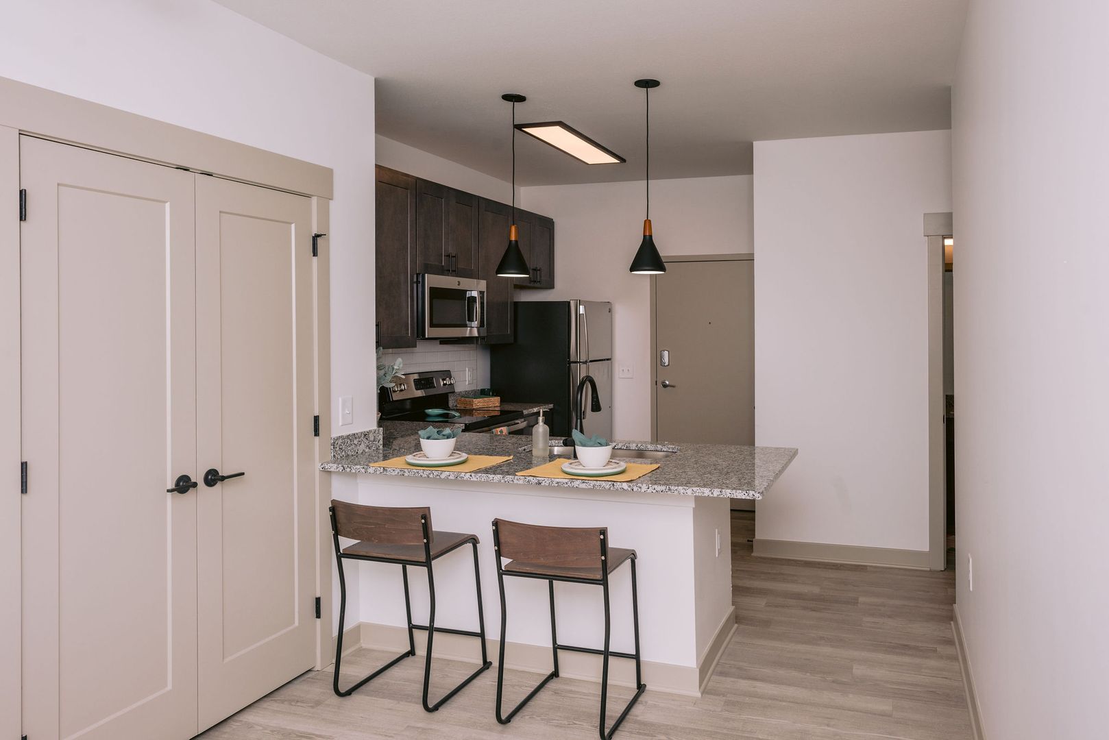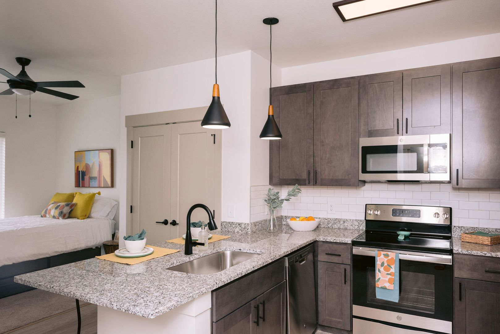 This cute and cozy 376 square foot studio apartment is perfect for someone who loves to utilize the entire space! With stainless steel appliances, granite countertops, and in unit washer and dryer, you can’t pass up this luxurious space. The SA floor plan has a large bathroom you with a full tub to relax in after a rough day, or use massive countertop space to create your gourmet meals!
